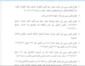 وبند اخر بأقتراح قانون يتعلق بتعديل بدل النقل للموظفي القطاع العام